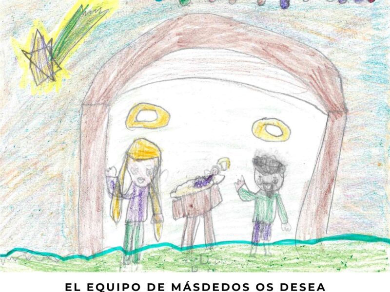 Todo el equipo de MÁS DE DOS queremos desearos una Feliz Navidad y este año lo hacemos con el dibujo ganador de nuestro concurso de Felicitaciones y Belenes Recortables. Lo ha re